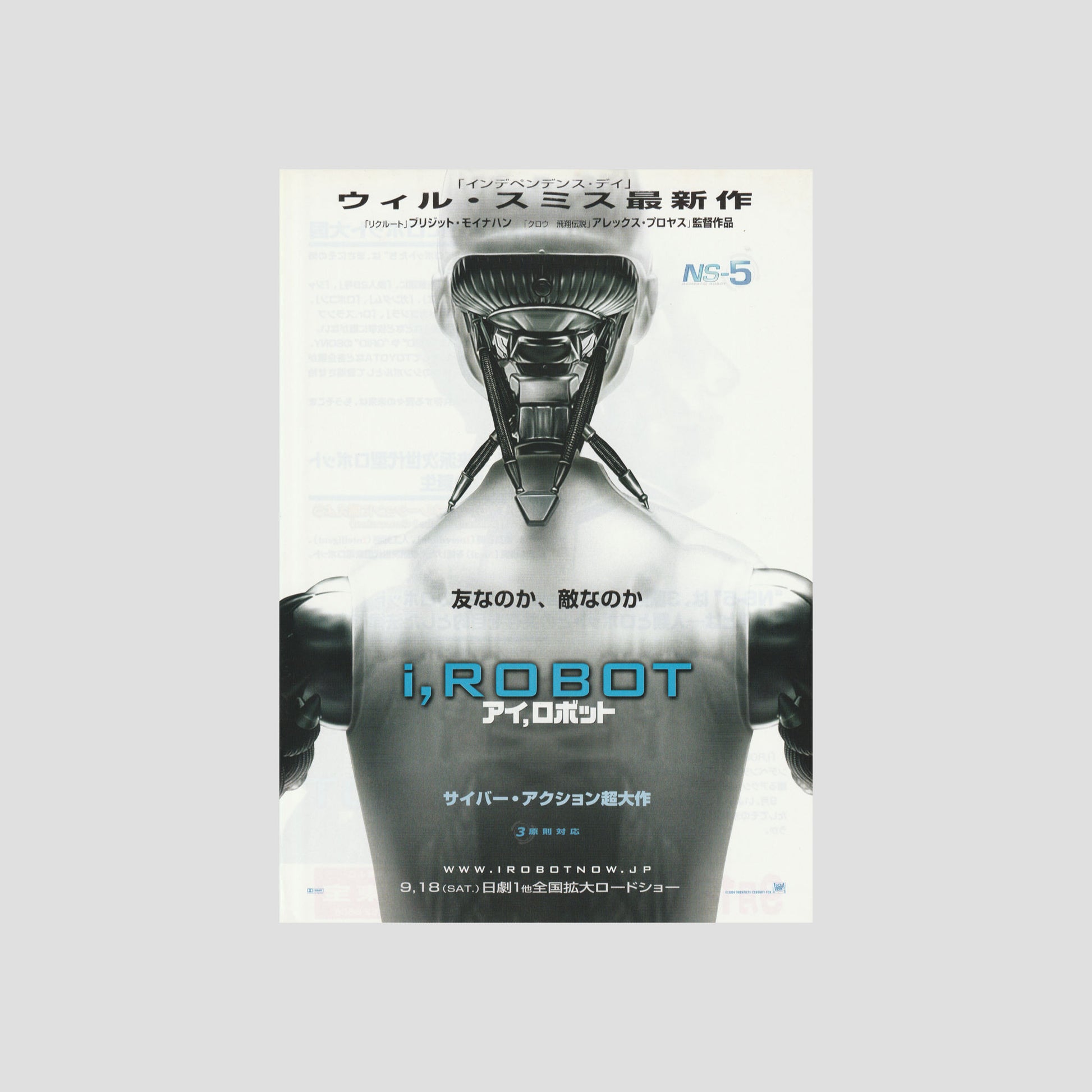 Authentic Japanese movie chirashi poster for I, Robot (Ver: A). Original B5 cinema handout from Japan — a collectible piece of film history and striking graphic art.